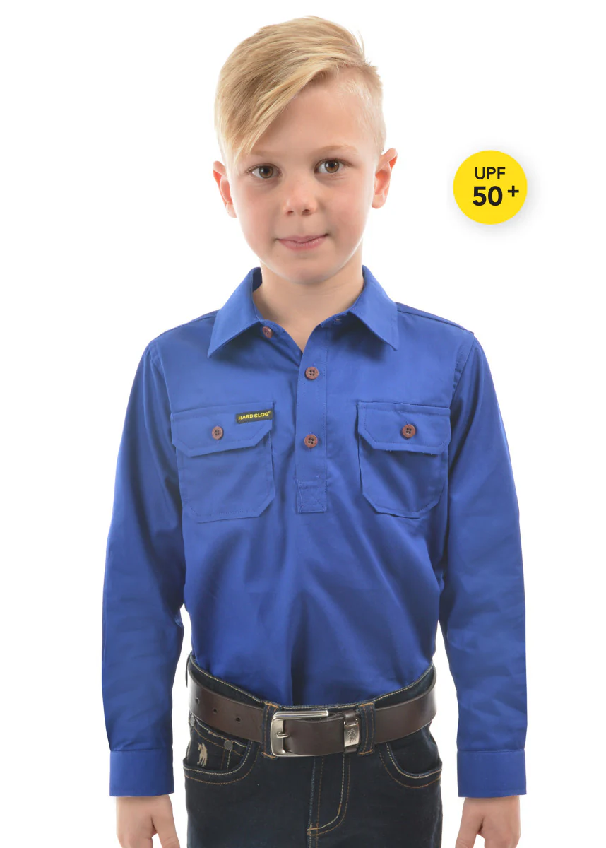 Designed for daily wear by every day children! These Hard Slog light work shirts are a must for every childs wardrobe, especially with the SPF protection offered within the shirts.