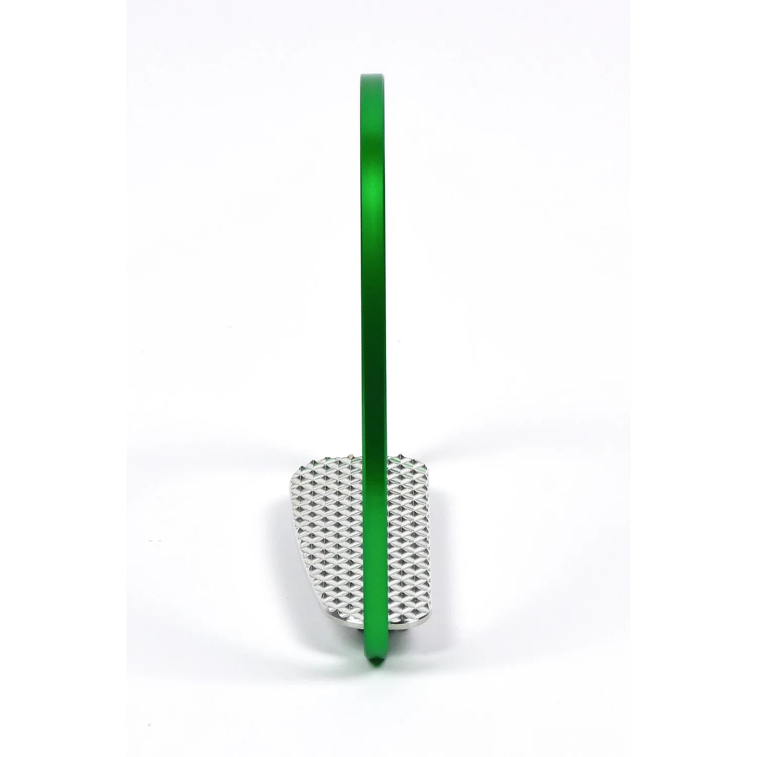 The tread has been designed in collaboration with professional jockeys and its grip has been conceived so to provide riders with the best adherence, despite the reduced size of the tread. When compared with other racing stirrups , a difference in the tread width can be noticed.
